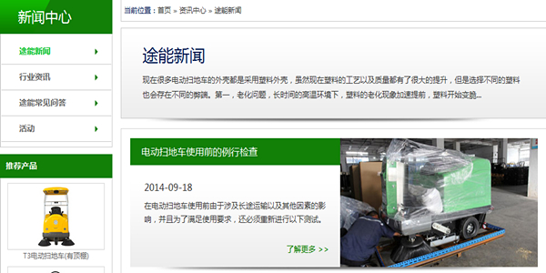 1.網(wǎng)站VI風(fēng)格詮釋: 要購買清潔設(shè)備的客戶一般都希望能用它打掃干凈、徹底,整個網(wǎng)站選用綠色和藍(lán)色(因為公司是集設(shè)備研產(chǎn)銷于一體,所以還采用了藍(lán)色,體現(xiàn)科技,表示產(chǎn)品質(zhì)量不錯),從客戶進(jìn)入網(wǎng)站的第一時間起,讓客戶潛在的知道途能的清潔設(shè)備節(jié)能環(huán)保的高科技產(chǎn)品。